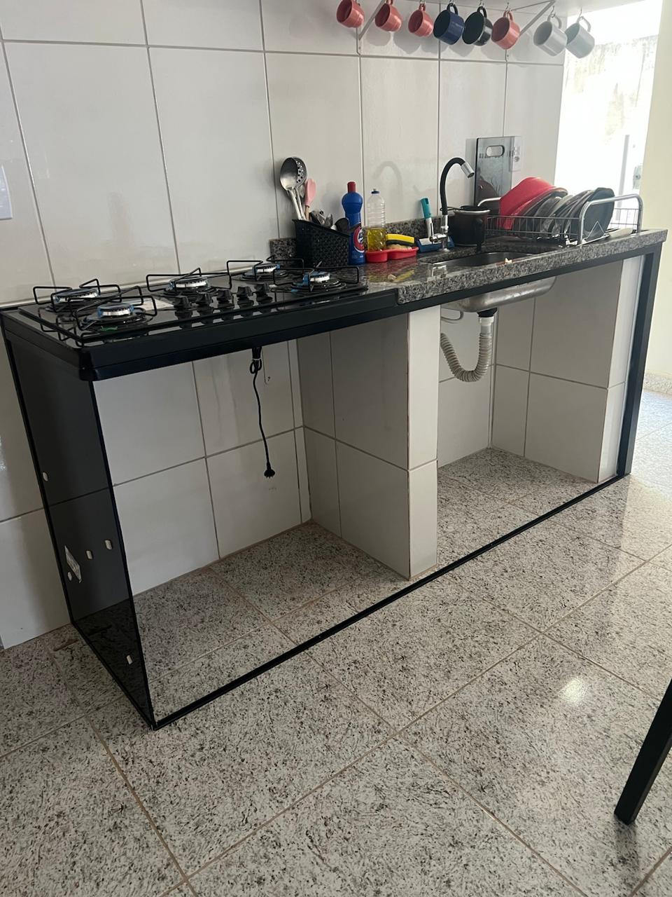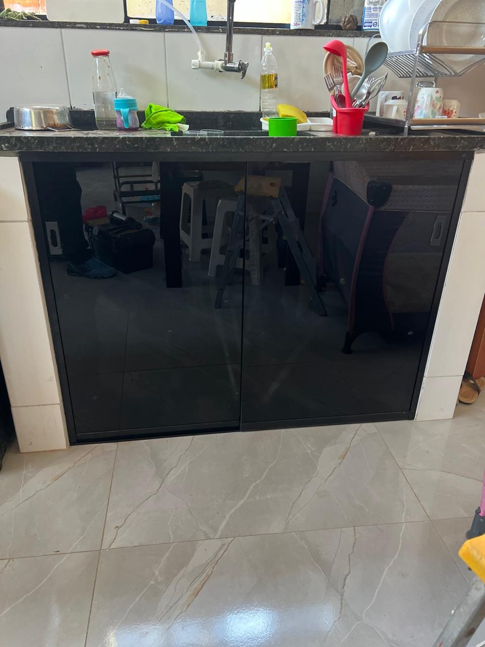 Soluções sob medida em vidro para fechamento de pias de cozinha, banheiro ou área de serviço. Ajuda a esconder encanamentos, proteger contra respingos e manter o ambiente mais organizado e higiênico. Disponível em vidro temperado incolor, jateado ou pintado.